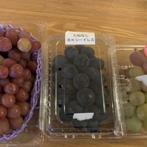 今年のブドウ🍇は最後かな〜 テッパン💚シャインマスカット 💜ナガノパープル初めての🩷マイハート💕本当にバートの形で可愛いです🥰