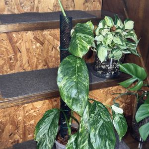 久しぶりの投稿になります🙇♀️ 斑入りのシンゴニウム"フレンチマーブル"。とっても爽やかでお気に入りです。 この辺りではなかなか見かけなくて、フリマアプリでやっとお迎えできた子🥹 そんな子を増やしたくて、どんどん水刺しに。 ①②親株です。 ツルが伸びたらカット、伸びたらカット✂️を繰り返し、きれいな葉っぱをだけを残し水刺しに。③ ④水刺しで発根したものをベラボンプレミアムに植え替えました。手前側の水刺しも発根したらどんどん移していく予定🤭 ⑤発根させた新たな株。どんどんボリュームアップさせるぞー⤴️⤴️ ポトスステータスをバックに…