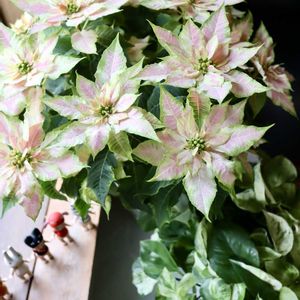 何年かぶりにポインセチアを お迎えしました ロゼマーブル" そして何十年かぶりにポトスも お迎えしました ステータス" もうクリスマスの準備はOKです