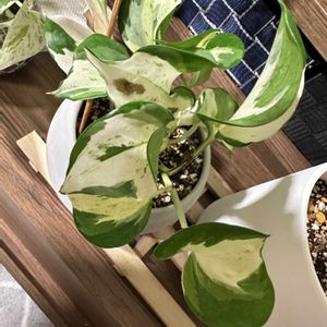 お花より、今は観葉植物の方が多いです 今日は蒸し暑いでございますねぇ(⚲□⚲) なので室内撮影。我が家の女王様 ポトスステイタス様でございます。 斑入りが美しい〜( ̳- ·̫ - ̳ˆ )◞❤︎
