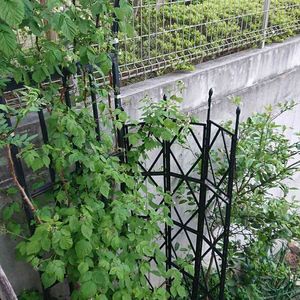 アーチを作りかけのラズベリーが咲き始めました。 綺麗なんですが、地味な花です。 隣のスイートレモネードも蕾を着けています。 今年はたくさん咲きそうです。
