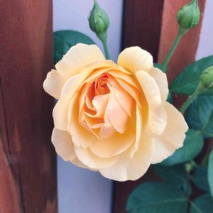 11/4㈬③ 🏷水曜ローズショー 生田緑地ばら苑に続く遊歩道 五ケ村緑道の川辺に咲いていました。 港の見える丘公園以外で見たのは初めてです😃 ちょっとマンゴー色がかった黄色で素敵なイングリッシュローズです🤗💛💛💛