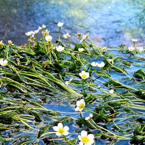 【 バイガモ ( 梅花藻 ) 】 中山道醒ヶ井宿を流れる 地蔵川の梅花藻 涼をもとめて、 また行きたいと夢見ています 2022年 7月24日撮影