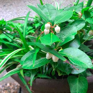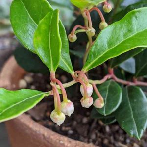 去年お迎えしたチェッカーベリーさん🍒 白いお花が咲きました♡ スズランみたいで可愛いです(..◜ᴗ◝..)🔔