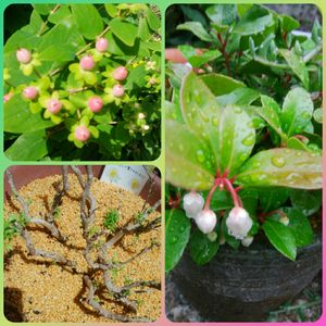 こんにちは☀ 昨日までの雨は止み今日は晴れてて風があって涼しくて過ごしやすいです✨ ↖ヒペリカムの実が可愛いです💓 ↙ボンザマーガレットのお花が終わって剪定して植え替えておいたら新芽がいっぱい出て来ました🌱🌱🌱 →チェッカーベリーにこんな可愛いお花?を見つけました💓 冬には赤い実がなるんですがこの時期にこんなお花が咲くのは知らなかったです💦 お水が大好きで雨の日以外は毎日水やりしてます💧💧💧