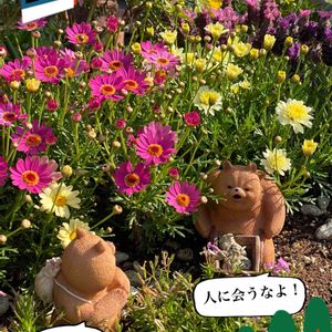 花壇で、🐻親子の会話が聞こえました(笑) 子🐻「毎日つまんないよ💦母ちゃんに🍙作ってもらったから、遊んでくる」 父🐻「今は人間もコロナ自粛してる時なのに、困ったヤツじゃ💦」 会話は、picに続きます🙋♀️ 人混みは、避けましょうね😉💕