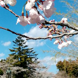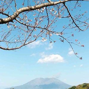 まだまだ、 蕾でしたが─ 桜島🌋とコラボで撮れました🍀 丁度、爆発💥して びっくりですΣ ゚Д゚≡( /)/エェッ! 青空とコラボシリーズ109