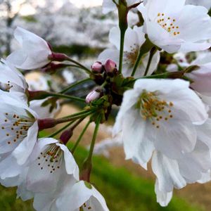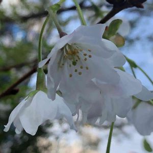 セイヨウミザクラ(西洋実桜) 別名:カンカオウトウ(甘果桜桃) バラ科サクラ属 我が家のサクランボ🍒のお花が咲きました❣️ 桜より雄しべが多くて🤍真っ白なお花が咲く桜です🤍 残念ながらサクランボ🍒は極めて少ししか実りません💦 しかも例年鳥さんに食べられてしまいます💧 さて❣️今年は何個私は食べられるでしょうか❓❓