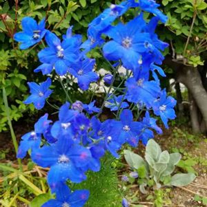 真っ青な花💙 宿根草だと思いますが 寄せ植え鉢が割れて地植えにしました。 名前を知りませんので 何方か教えてください🙇⤵ よろしくお願いします(’-’*)♪