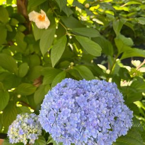 ①紫陽花「西安(シーアン)」 🛒買い物ついでにお花屋さんの前通ったら紫陽花がいっぱい並んでたんで吸い寄せられちゃいました😳 棚の上の大株は良いお値段してましたが💦下にはトレイに3号ポットの小さい苗がたくさん😍お値段もお手頃だったので迷わずお迎えっ✨ ②裏側はまだしっかりブルーが残っています💙茎もしっかりしてるし脇芽も出てきてるからまずは6号鉢に植えました🌱 ③紫陽花「てまりてまり」 隣に並んでたんで、ついつい一緒にお迎えしました😅2つで1,000円でお釣りがくるなんてお買い得~🌟