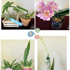 昨日はサンシャインの蘭展最終日 お友達6人でわいわい行ってきました✨ 楽しかったです😆💕💕💕 今回はあまり買わないといいながらまた買ってしまった😅💦 だってステキな蘭がお手頃価格なんですも〜ん♬ 戦利品アップさせてくださいね♬ ①④紫の原種系胡蝶蘭✨ かわいいし美しい😆💕💕 欲しくて何度かヤフオクで頑張ったけど諦めてた子たちをお手頃価格でゲット♬ 2つはお花が全然違うけど交配名は一緒でした‼️ 洋蘭が簡単に種まきできたらいろんなお花を咲かせられて楽しいだろうなぁ〜🥰 買ってこなかったけどデンドロもタネから育てて咲いた株を世界に一つだけのデンドロと言って売ってました なんだかロマンですねー😆💕 ①の下はカトレアの仲間で、雪の結晶みたいな6角形の真っ白いお花を咲かせます お花きれいな上に桃のような香りがほんのりしました🥰 ②はデンドロ2種 上は名札ついてなかったけど箱にヒビキと書いてありました こんな淡い色のもあるんですね😊 かわいい💕 下はなんだか好みなオレンジの小さいデンドロ 写真だとリップが茶色ですが実物は赤くてかわいいんです❣️ ③胡蝶蘭2種 右上の子はお花変わってます 上の花びらにリップみたいな模様が入り花びらもパカっと開かないタイプ 白地に赤紫の模様が粋な感じです✨ 左下は2,000円のが2株1,000円にお値引き✨ お友達と1株ずつ分けて500円でゲット👍 左下はお友達からピンクのお花の咲くオンシジューム フレグランス ファンタジーをいただきました✨ いつもありがとうございます😊♬ 蘭をゲットして、みんなでお喋りして楽しい1日でした😆💕 今日はデンドロの植え替えを頑張りたいと思います✨ お外の棚の準備もできたらそろそろデンドロとカトレアは出したいな〜