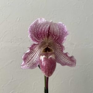 サンシャイン蘭展 購入品その2 Paph. Angela (fairrieanum X niveum) フェイリアナムの雰囲気感じるピンク花💖 ニベウムはあまり感じないのは私の感覚の鈍さ? その3 Den. Tdares Yukibaby (Angel Baby 'Green Ai' × Yukidaruma 'King') グリーン愛ちゃんがお母さんなら咲きやすそう? そして父上は、憧れのユキダルマ⛄️さん。 花見本はお父さん似でした。 嬉しい蕾付きとあればお迎えする他,選択肢はありませんでした。