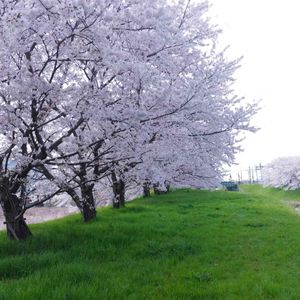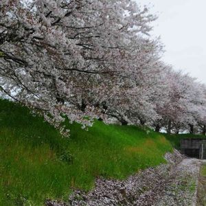 おはようございます☀️ 昨日のアップした🌸並木の原っぱの反対側になる土手 散り初めで迫力が無いけど、ちょびっとだけ桜吹雪🧡 2020年春の撮影です。