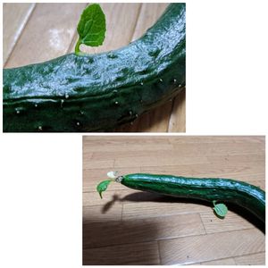 昨日友達のお庭で採れたきゅうり(笑) きゅうりから発芽? 食べれるのかなぁ🤣 面白い😆