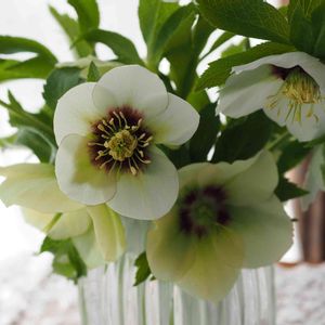 クリスマスローズ、庭に沢山咲いてます、皆んな下を向いてるのでお顔が見えません、綺麗なお顔見える様に部屋に飾りました💕