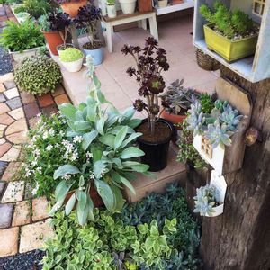 おはようございます♪ ようやくお日様が出て来ましたよー 玄関前の植物達ですが、長雨に打たれてますが、大丈夫みたい🙆 枕木ゾーンもワサワサ💚 カリシアさんも地に付きながらまだ成長中(๑•́ ₃ •̀๑)/🌿