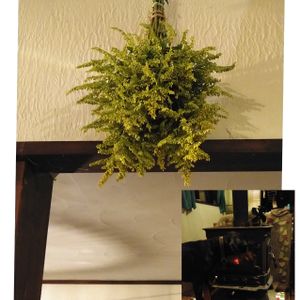 オーガニック直売所「タネト」さんの店先です🍀これは、ドライフラワーというかドライツリー😅❓薪とランプと、窓のペイント…。すてきな雰囲気です💕 薪ストーブのある生活🍀憧れます😊
