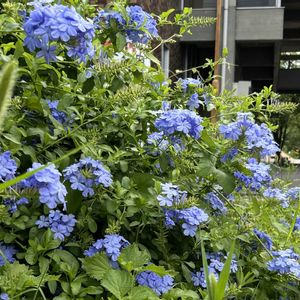 図書館の脇に咲いていたのは、ルリマツリかな? 雨雲が出てきたので帰ります