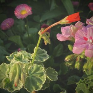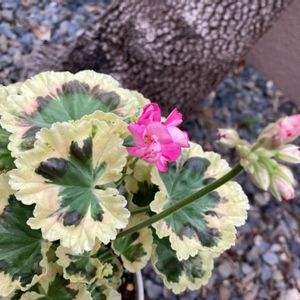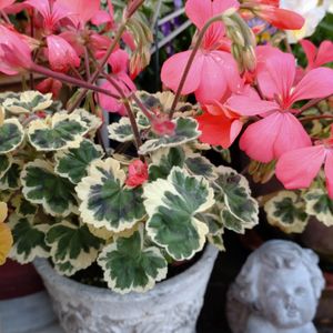 おはようございます🌞 斑入りが好きでついついコレクションしてしまう😚葉っぱを楽しむだけでも🆗だけど今年は花もたくさんでうれしいゼラニウムです👏