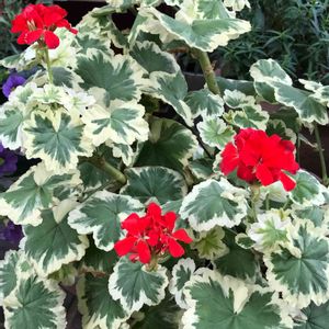 今週は少し気温が上がる⤴️ 庭に植えたゼラニウムの 小さなお花が咲いたよ〜🌸 葉っぱも斑入りで可愛いなあ〜😊💕