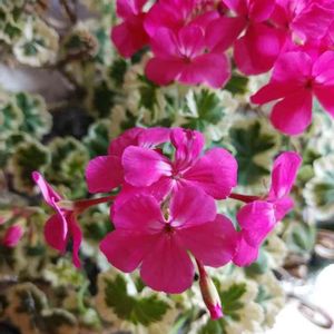 斑入りのゼラニウムの葉っぱが💗色づいてます❣️ 頬染めたかの様で、可愛い💕ですね〜😉