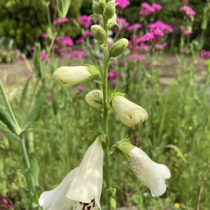 ジギタリス開花🤍🌿 自家採取の種から一株だけが夏を越え冬も越え😃 咲いてくれました✨ うれしいうれしいっ🤭🎶 2️⃣踏まないように! 間違えて草取りしないように‼︎ ジギタリスの一株を守っていた小さな木のフェンスが 写ってます🤭‼︎ 3️⃣息子のお土産‼︎ 高輪ゲートウェイ駅構内のシュークリーム💖 "クリームブリュレ🍮" 3月のオープン初日に寄った時は 「完売だった…」と残念がっていたの😅 こちらも待ち遠しかった素敵なお土産🤭✨ ありがとう😃 サクサクトロントロンで食べ応えたっぷりです💖 今日はこれから、アレンジです💐 🏷純白マニア 🏷白い貴婦人✨ 🏷白い水曜日♡ 🏷美味しい♡ 🏷平和を願う🕊 📸9:10〜9:21