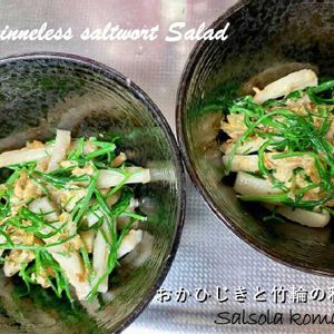 おかひじきを頂きました♪ オカワカメも大好きですが!おかひじきも大好き! 来年は、栽培しようと思っています。 癖もなく、えぐみもないのでお勧め! 竹輪を細切りにしておかひじきと和え物に。