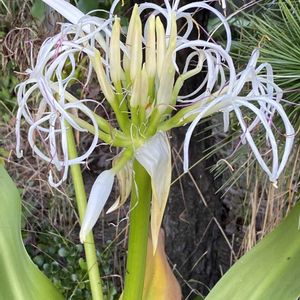 今日のお花、ハマユウ🍀 白いキョウチクトウが、美しい姿を見せてくれる、長崎市松嶋稲荷神社にて。 私の行動範囲内で、唯一ハマユウが見られる場所です😄 今年も独特の花姿に、出会うことができました✨💚🤍💚😊💕 1️⃣2️⃣3️⃣2025/7/28 撮影🍀