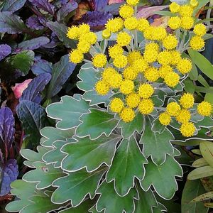 元気色の庭のイソギク(磯菊) 花も可愛いけど、 縁取りのある葉っぱが、またまた可愛い🌿😍