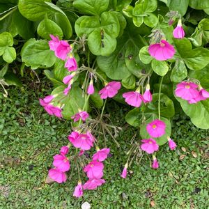 道路脇で咲いていたのを、少し頂いてきたのが、こんなに大きくなりました🎵 毎年花を咲かせてくれます❤️ 名前もGSで教えて頂きました😃 <ハナカタバミ> カタバミ科カタバミ属 南アフリカ原産 学名 オキザリス・ボーウィー 花期 夏~秋 日陰では花を閉じる 葉も夜になると内側にたたむ睡眠運動をして、それが片側を食べられた様に見えるので「片喰、傍食(かたばみ)」と名付けられた