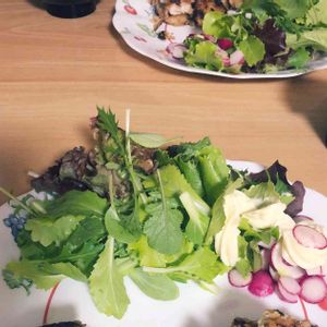 収穫後(食べる直前)の写真で申し訳ない(笑) 1週間でベビーリーフとサラダミックスがこれの倍収穫出来ました(*^^*) 身割れしちゃってた二十日大根を添えて(*ˊᵕˋ*)