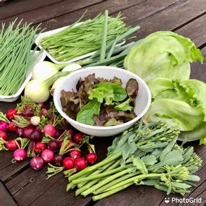 週末日曜☁️朝の畑の恵みは、カラフルなラディッシュ💜❤️💖など。 初物のミックスレタスは🥬は、これから数日おきに葉摘みで楽しめそう😊。 今日はお昼頃から雨☔️予報、ちょっとだけ草取りでもするか💪。
