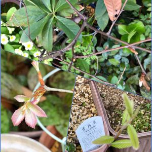 ミスミソウの守り木達 新芽が出てきました。 昨日クヌギの枯れ葉が最後の一枚になっていましたが、夕方には落ちていました。 コナラの新葉可愛いな。