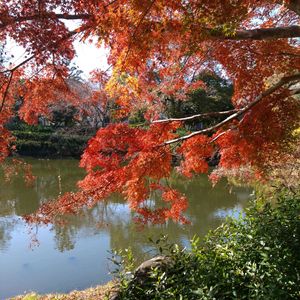 11月最後の日曜日、天気が良かったので紅葉を見に。 ①〜③イロハモミジ ④もっと奥の方まで縦に細長い池です。 ⑤番外編 🦆さんお散歩中。結構距離が近くても平気みたい。散歩中の🐶にもお互い関心なく平穏😊