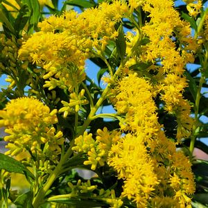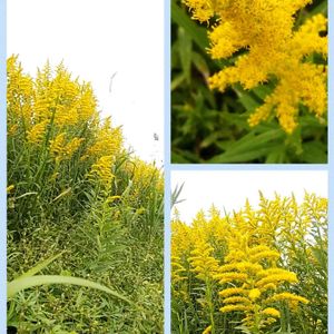 〜セイタカアワダチソウ(背高泡立草)〜💛 キク科 虫媒花の北米原産の帰化植物 風媒花ではないので花粉症の心配はいらないんですよね❗️ 鮮やかな雑草💛🌿 そこらじゅうに今いっぱい生えてますネ🌼🌼🌼 昨日のウォーキングで♪ 3枚目…アメジストセージの群生と共に☀️ 公園にて昨年のpic. 青空に映えます♪💛💜 4枚目…我が家のコキア🧹と一緒に飾りました😆