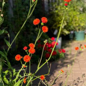 11月15日に投稿したカカリア ブルーマジックの色違い、オレンジ色です。 同じカカリアですが、印象が違ってきますね! 赤みを帯び、まぶしいくらいの夕陽で輝いていたこのカカリアが生み出す雰囲気が、とても素敵でした。 別名 絵筆菊 キク科 一年草 🏷️日曜ビタミンカラー♪ に参加します🍀