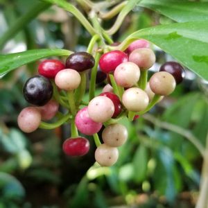 セイロンマンリョウは、ヤブコウジ科に分類される植物の一種。別名ウミベマンリョウ、 コウトウタチバナ。 実を掴んでる咢が可愛くて🌿 以前会ったときはカラフルな 実だったのです。