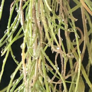 タライにいろいろ浸した朝 吊るす苔玉って水がポタポタ落ちるのかと思いきや、30秒ぐらいでポタポタは止まりますね。 ウスネオイデスは 右が太葉 左が細葉 濡れてるとわかりにくいですが、 太葉の方がトリコームが多くて、乾いたらシルバーリーフ系色になります。 細葉は完全に緑です。 今度は極細葉が欲しいです😚 レンジフードのマグネットフックで乾かしたら、いつもの場所へ…