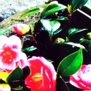 散策の通り道に有る、 お寺の境内に有る蹲に、 椿の花が挿して有りました。