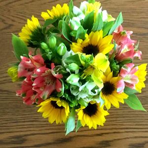 今日のお花 ひまわりのブーケ💕 今日は予想最高気温31度です 今日の気温にピッタリです👍