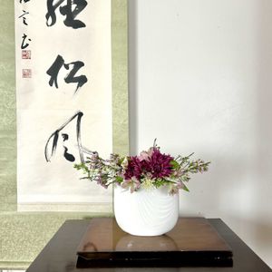今週はお稽古がお休みなので、なんだかスケジュールが崩れて、気合いが入りにくいです😅 1、お花屋さんの扱う花が、秋色から次第にクリスマス色(白、赤、緑)へ変わっています。 和洋折衷で生けました。 花器: 地元の陶芸家Jason Strickland(ジェイソン・ストリックランド)氏の花瓶 花材: バラ、ヒペリカム、ワックスフラワー、サンゴミズキ、ロウカデンドロン(リサイクル♻️) 2、ダーリンの両親がアメリカの寿司レストランへ連れて行ってくれました。馴染みのないフュージョン寿司でしたが、これはこれでとても美味しかったです💕 3、寒くても頑張るジミヘン君、さらに慣れて、カメラに収めやすくなってます👍最近100%雄と確定。 4、我が家の癒しのキング👑サスケお昼寝中。