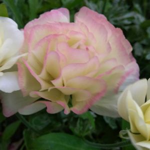 1枚目 なんだか、グラデーションの綺麗なラナンキュラスが1輪咲きました(*´Д`*)キュンꔛෆ 2枚目 変わった色合いのペチュニア。もう3年目かな。 3枚目 飾ってみました。ピンピネラ可愛い♡ 4枚目〜最近のもりもりお庭🌼