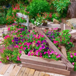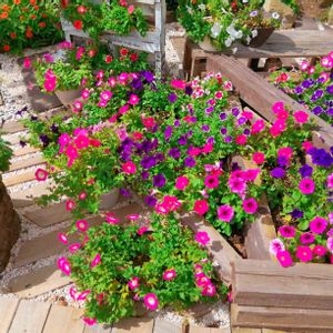 南側から撮影 ペチュニアだけの集合写真っす。花数が減ってきそうな気がしたので動かせれるものだけ寄せて写真を撮ることにしました(*^^*) 東側も投稿してます。