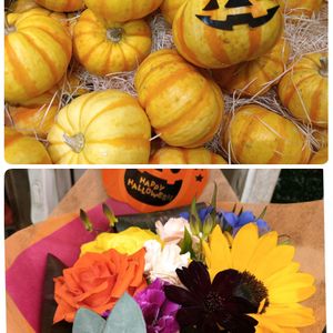 本日2枚目💦失礼します 🕸‧˚₊*̥👻♩"🎃ྀི🕸⁺⊹˚.⋆👻♩"🎃ྀི 今日のお花🎃 かぼちゃ🎃 前に作ったのも………🎃 寄せ植えこの間作りました タイガーマスク🐯 イヤイヤ「タイガーアイ🐯」 過去picより ワタとか木の実リース作りました 今じゃ……… 最後は今日結婚式ね💒 幸せね〜〜〜〜😆😆👍 💀💀🩷🩷🩷