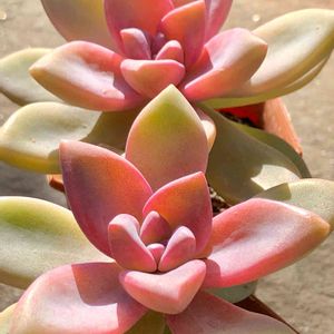2019/11/2(土) グラプトベリア 桜牡丹・ゴースティ (丼にしたいけど) 桜牡丹は一鉢に大中小6株🌸縦に伸びるし、日照不足で間延びしやすい😅お水を吸ったらピンク色が薄まるし……見てて飽きない😃別に寄せ植えのポイポイ鉢にも桜牡丹が有るけど、そっちの方が肉厚の葉🌿土の栄養の違いかな🤔伸びると頭が重くて倒れるから、これからどうしよう😞💨一度高さを揃える為にカットして丼にしようか?このまま様子見るか?🤔 ………密かにだけど、桜牡丹の名前に願を掛けてる…… 周りのアロマティカス・ルシンダジャガー・名無しさん達は盛り上げ役で🍀