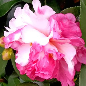 東京で見かけた山茶花 🌸🌸🌸🌸🌸🌸🌸 ピンク色に白がちょっと とても可愛らしいお花です