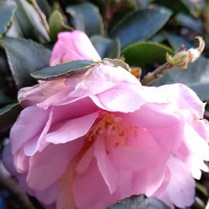 おはようございます どうも2月は全体的に暗め? なので敢えて… バラのような華やかな山茶花で 朝の気分を上げてみました⤴️