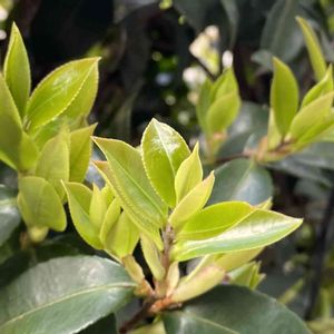 今日の玄関先 若い芽が雨に濡れてもきれいでした