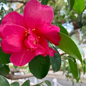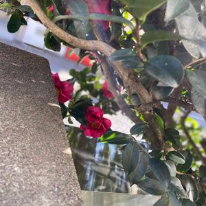 この、山茶花🌼窓を開けると入って来そうなくらい近いです😍隣の山茶花⁉️😱今まで🧐椿寒椿(カンツバキ)だと思っていたんです‼️もうすぐお正月🎍🌅🎍✨ ラッキー~😋 サザンカ(山茶花) ツバキ科ツバキ属/常緑低木、開花時期10月~12月 サザンカの葉は、🍃ふちがギザギザ(鋸歯)… 椿(ツバキ):鋸歯が浅い