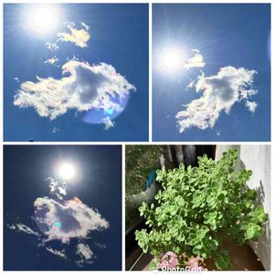 植物なくて🙏🙏🙏 彩雲が❣️😆と思ったら、さらに輪がある🤣🤣🤣 あ、彩雲というか、ハロ、ですね😅